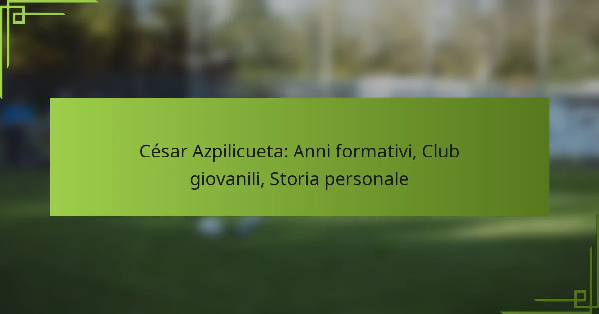 Il percorso di César Azpilicueta per diventare un calciatore professionista è iniziato a Pamplona, Spagna, dove i valori familiari e le prime esperienze sportive hanno influenzato significativamente il suo sviluppo. Il suo tempo trascorso con vari club giovanili gli ha fornito abilità essenziali e resilienza, plasmando il suo stile di gioco unico. La storia personale di Azpilicueta riflette la sua dedizione allo sport e le influenze fondamentali che lo hanno guidato nel corso della sua carriera.