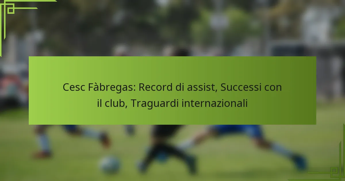 Cesc Fàbregas ha avuto una carriera straordinaria contrassegnata da risultati significativi sia a livello di club che internazionale. Il suo percorso include numerosi record di assist, successi nei club con squadre di alto livello e notevoli traguardi internazionali con la Spagna.
